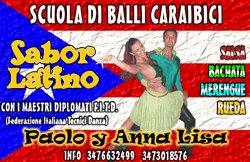 Sabor Latino! Scuola di Salsa a Pomezia di Paolo e Anna Lisa: Scuola Sabor Latino. Balli Caraibici: corsi di Salsa Portoricana, Bachata, Merengue, Reggaeton, con il Maestro Paolo Bianchi e la Maestra Anna Lisa Colurcio diplomati FITD